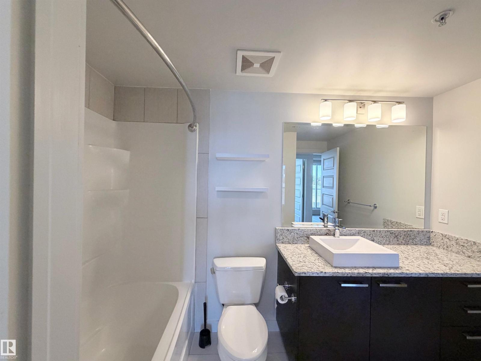 URBAN LIVING at its FINEST at The QUEST! This 2 bedroom 1 bathroom condo is located just 1 Block SW of Rogers Place & the new Ice District. This OPEN CONCEPT unit features STAINLESS STEEL APPLIANCES, RICH ESPRESSO CABINETS AND GRANITE COUNTERTOPS throughout. There is engineered HARDWOOD FLOOR throughout the main living space, modern ceramic tile in the bathroom and upgraded carpet in the bedrooms. The cheater style bathroom is accessible from the main living space or the primary bedroom walk-thru closet. The unit is complete with IN-SUITE LAUNDRY, AIR CONDITIONING, a west facing BALCONY with a NATURAL GAS hook-up and ONE TITLED UNDERGROUND PARKING STALL. EXCEPTIONAL LOCATION within walking distance to the LRT STATION, GRANT MCEWAN, RESTAURANTS and SHOPPING. (id:63190)